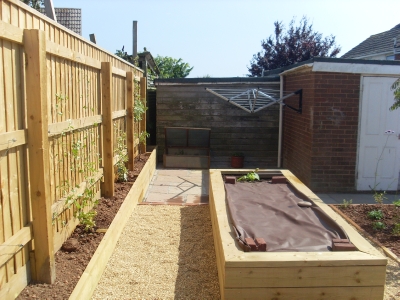 A utility area and raised veg bed have been incorporated
